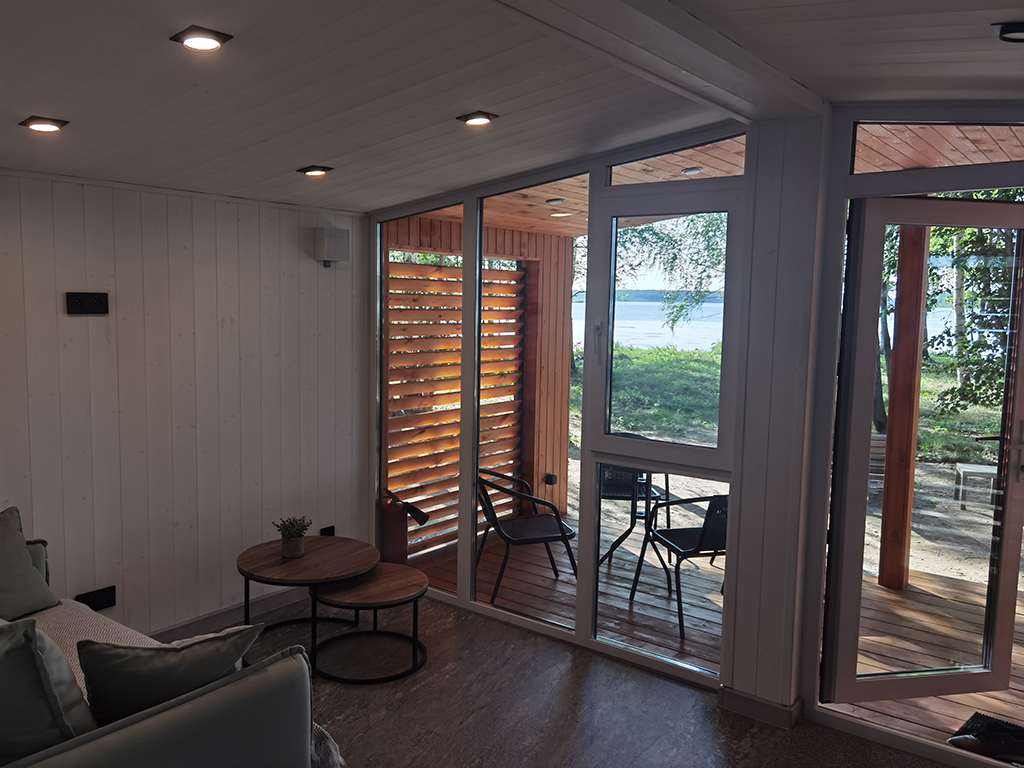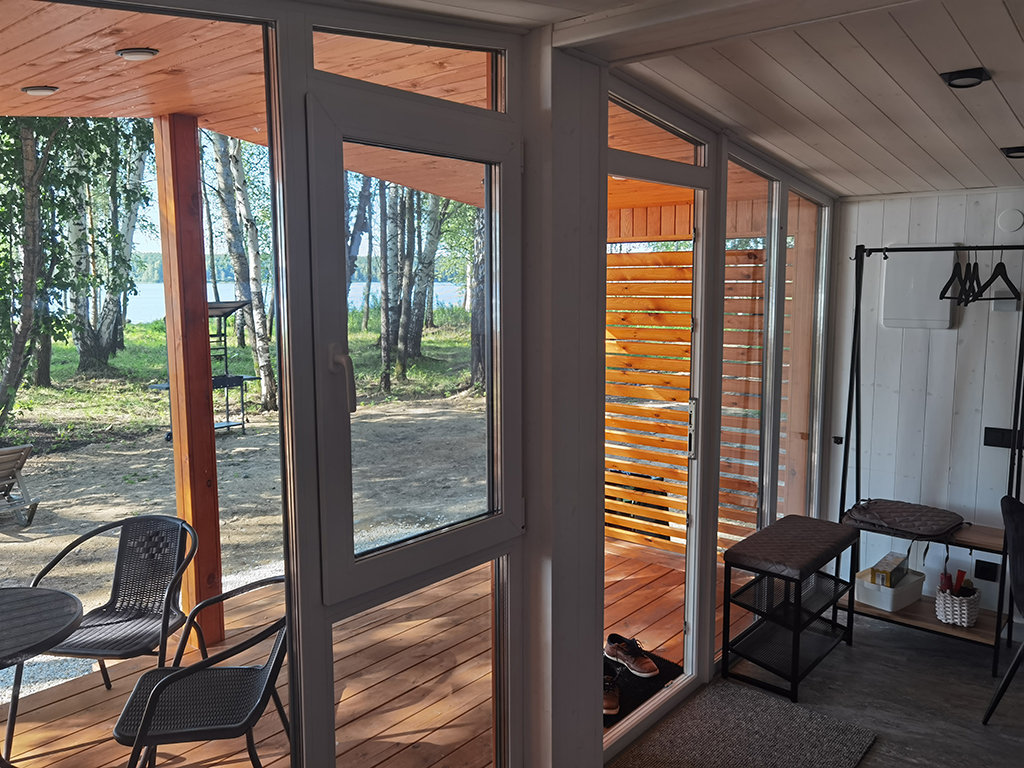 • Вагонка «Штиль» из хвойных пород (сосна, ель) с предварительным окрашиванием в белый цвет краской Тиккурила.